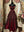 Wine Red V Neck Tea Length Party Dress, Wine Red Velvet Wedding Party Dress HZ1024