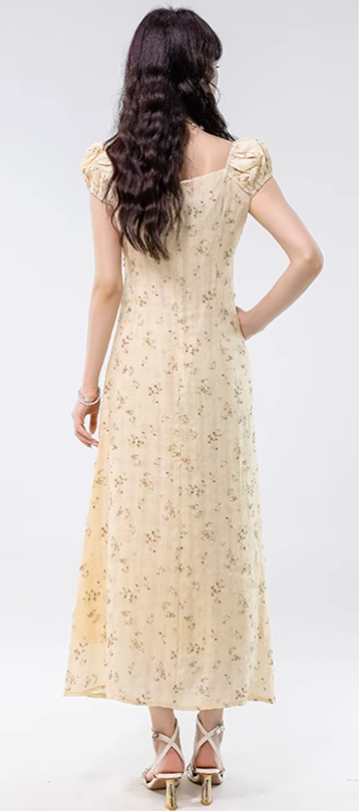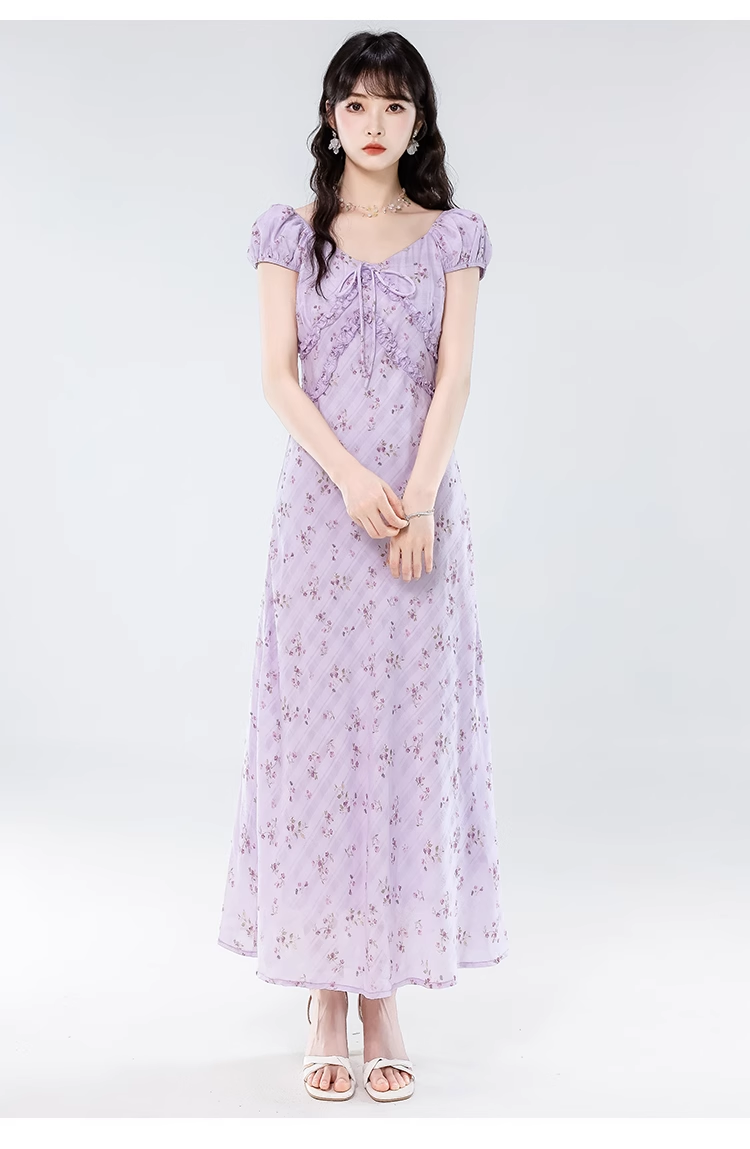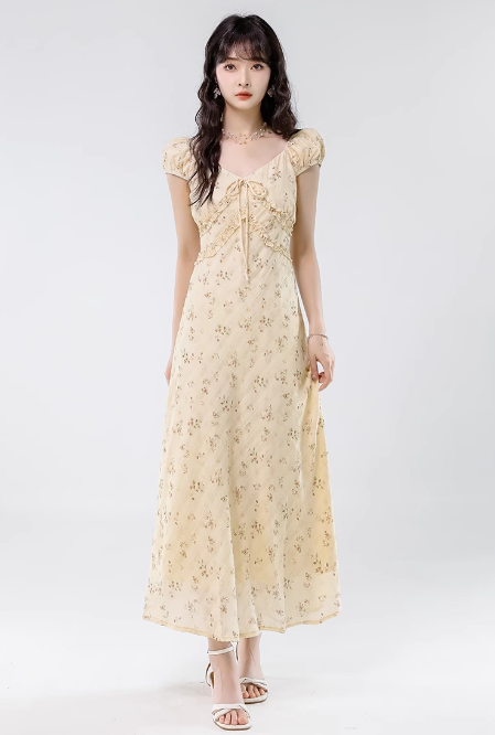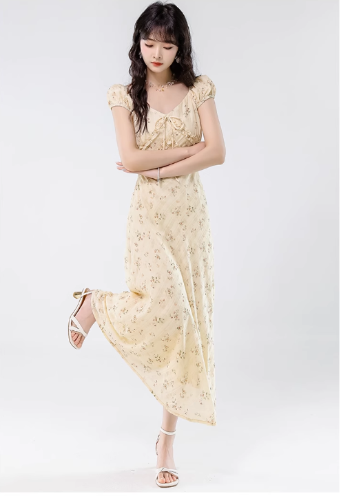 Simple Fashion Floral Design Sweet A-line V-neck Short-sleeved Dress HZ1024