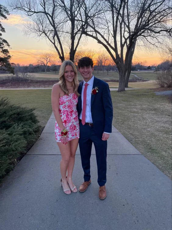 Vintage Floral Print Strapless Short Sheath Party Dress Cocktail Dress Homecoming Dress HZ1024