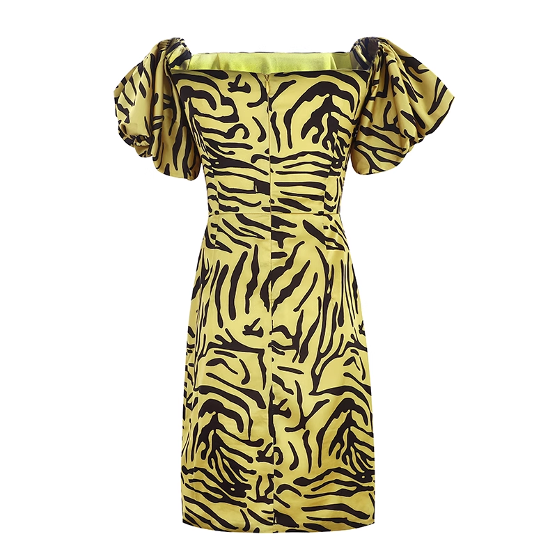 Yellow Leopard Print Off-the-shoulder Design Sheath Party Dress HZ1024